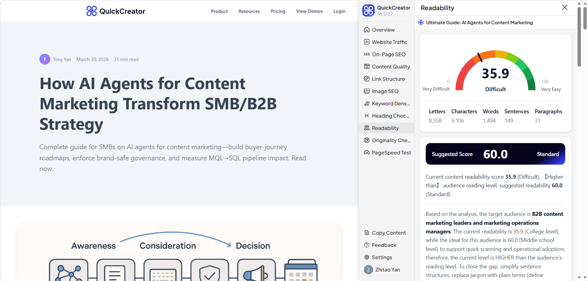 QuickCreator is best understood as an E‑E‑A‑T checker for content (E-E-A-T checker for content) that still respects the fundamentals—plus a practical readability layer for content QA.